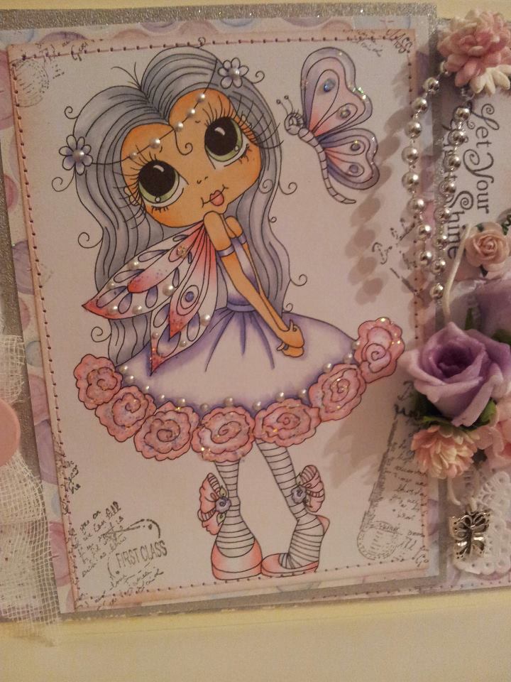 This is gorgeous. I love the cute image and the design and embellishments are beautiful. Thank you for sharing this with us at Dream Valley. Hugs Sharon. x